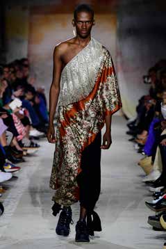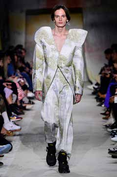 Entwürfen ab. Der 25jährige mischt gekonnt ausgefallene und tragbare Teile in seiner teils prachtvoll gemusterten Herrenkollektion.