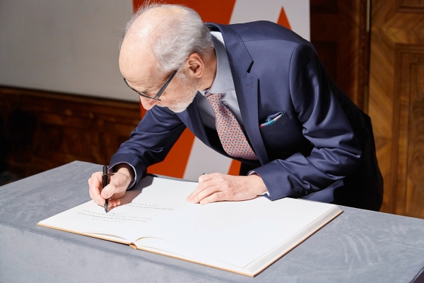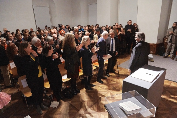 Bast und Ruth Mateus-Berr, im Rahmen eines Festaktes den Ehrenring der Angewandten an Univ.Prof. Patrick Werkner. Anlässlich