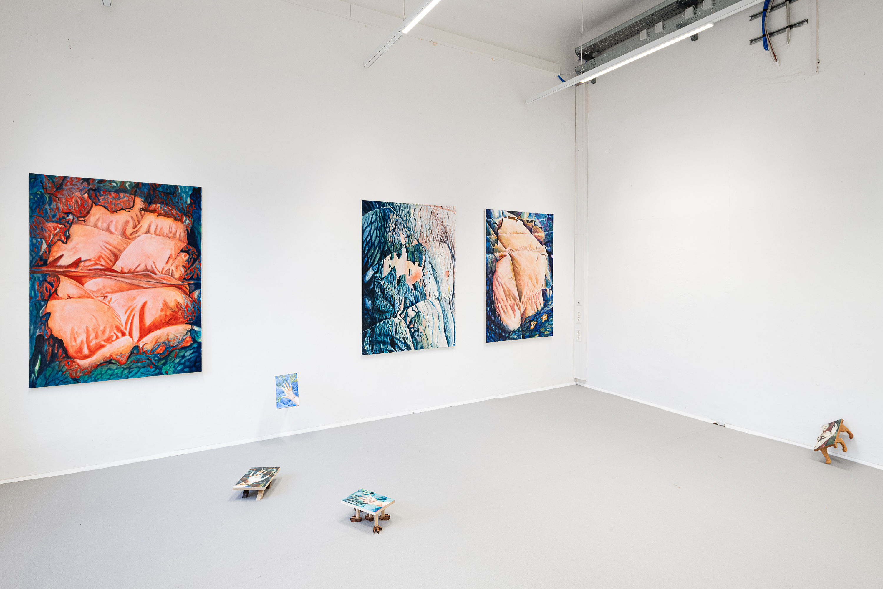 zwischen Abbild und Realität. Leinwand wird gemalter Stoff, Farbschichten werden Federbett, werden Haut, werden Rinde, werden
