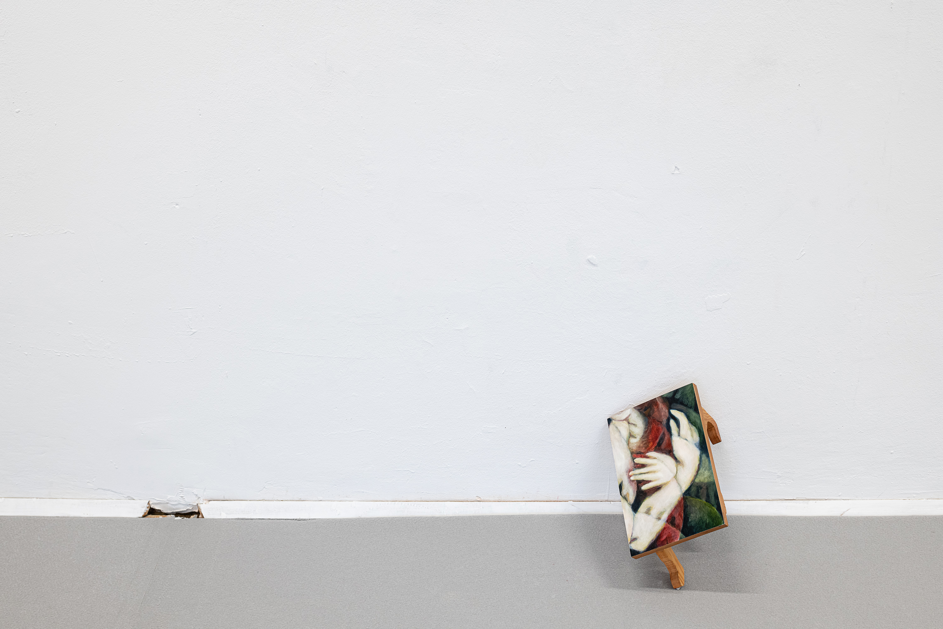 die materiell und metaphorisch vielschichtig, auf subtile Weise latente Gewaltverhältnisse als Gegenwart von (Malerei-) Geschichte